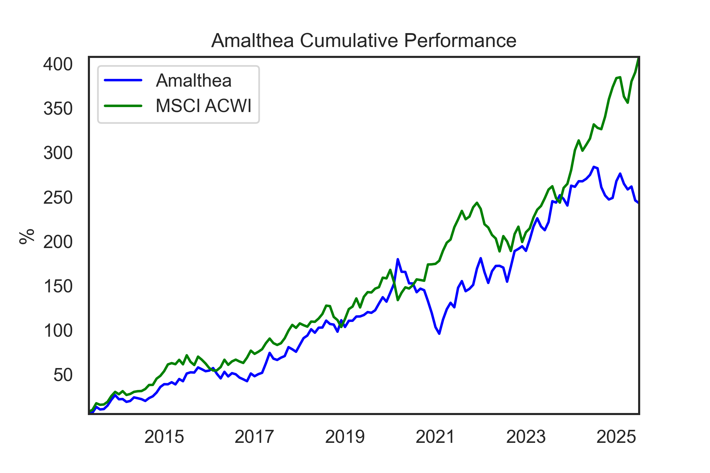 Amalthea fund performance since inception on 1 May 2013, inclusive of reinvestment of distributions.